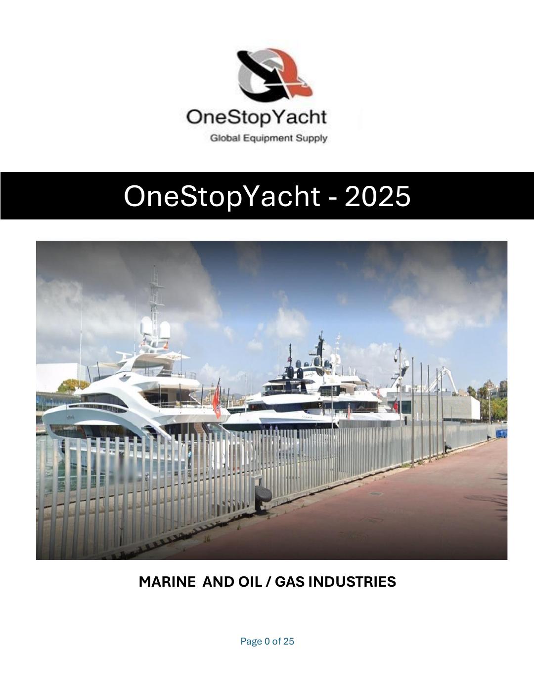 From the smallest, most obscure, hard-to-find products to capital equipment such as cranes, engines, batteries, ropes, pianos, gyms and gym equipment , tenders or complete supply lists we are here to complete and deliver all purchasing requests. .................... Cannot find what you are looking for .. contact us .........................Think - OneStopYacht
